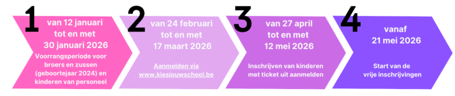 Meer informatie over de voorrangs- en aanmeldingsperiode vind je op www.kiesjouwschool.be